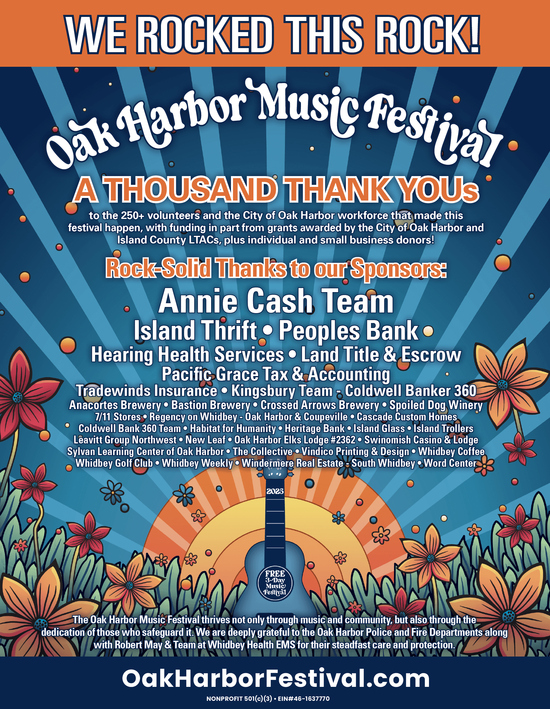 The festival is dedicated to hosting a world-class, 3-day event which contributes vibrancy to the local community, brings our island neighbors together, establishes lasting connections with visitors, and encourages the expression of music in local young people. Our motivation is to provide an inspirational event that brings joy, builds a sense of community, generates revenue for Whidbey Island businesses, and creates musical opportunities for local students by offering scholarships and sponsoring instrument programs designed to provide equal access to music—impacting generations to come.